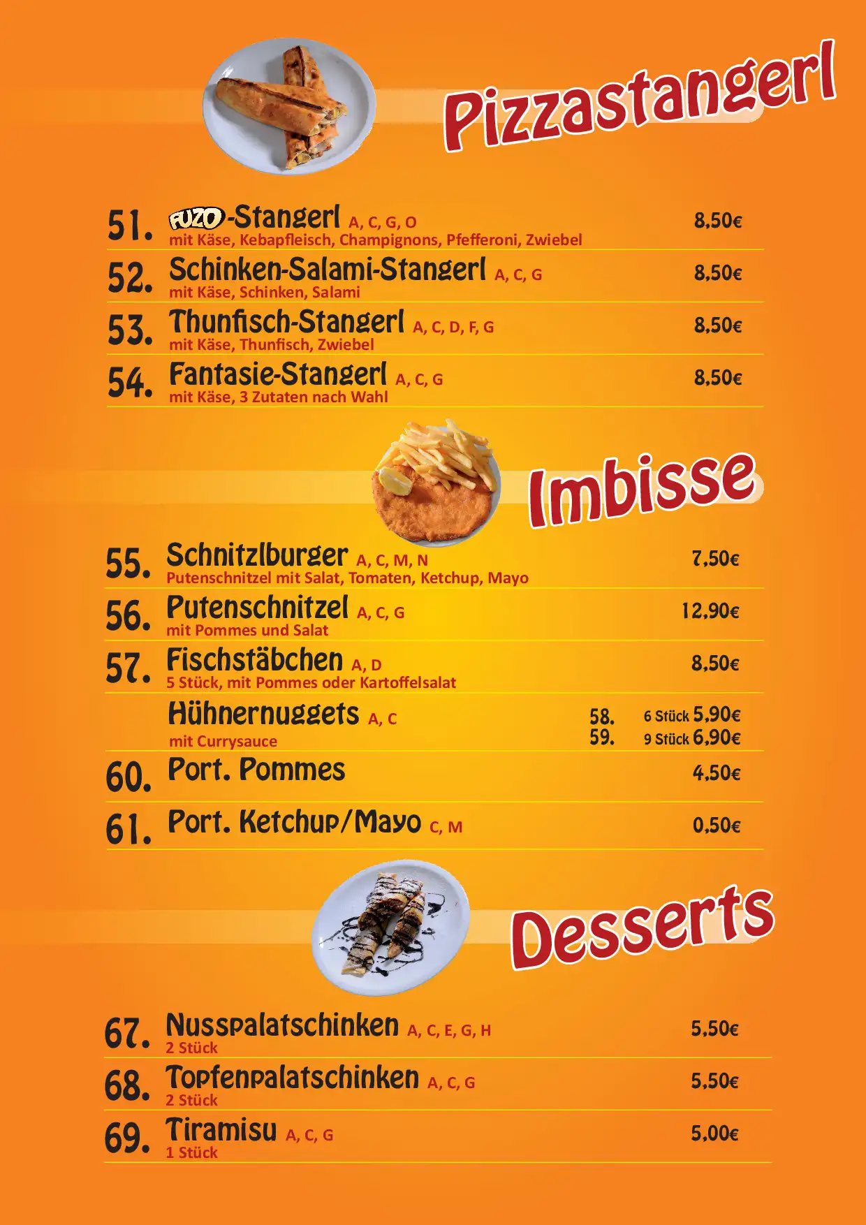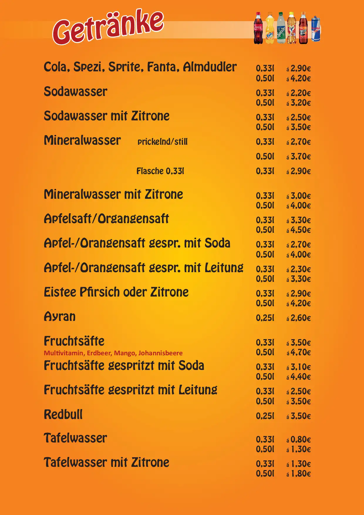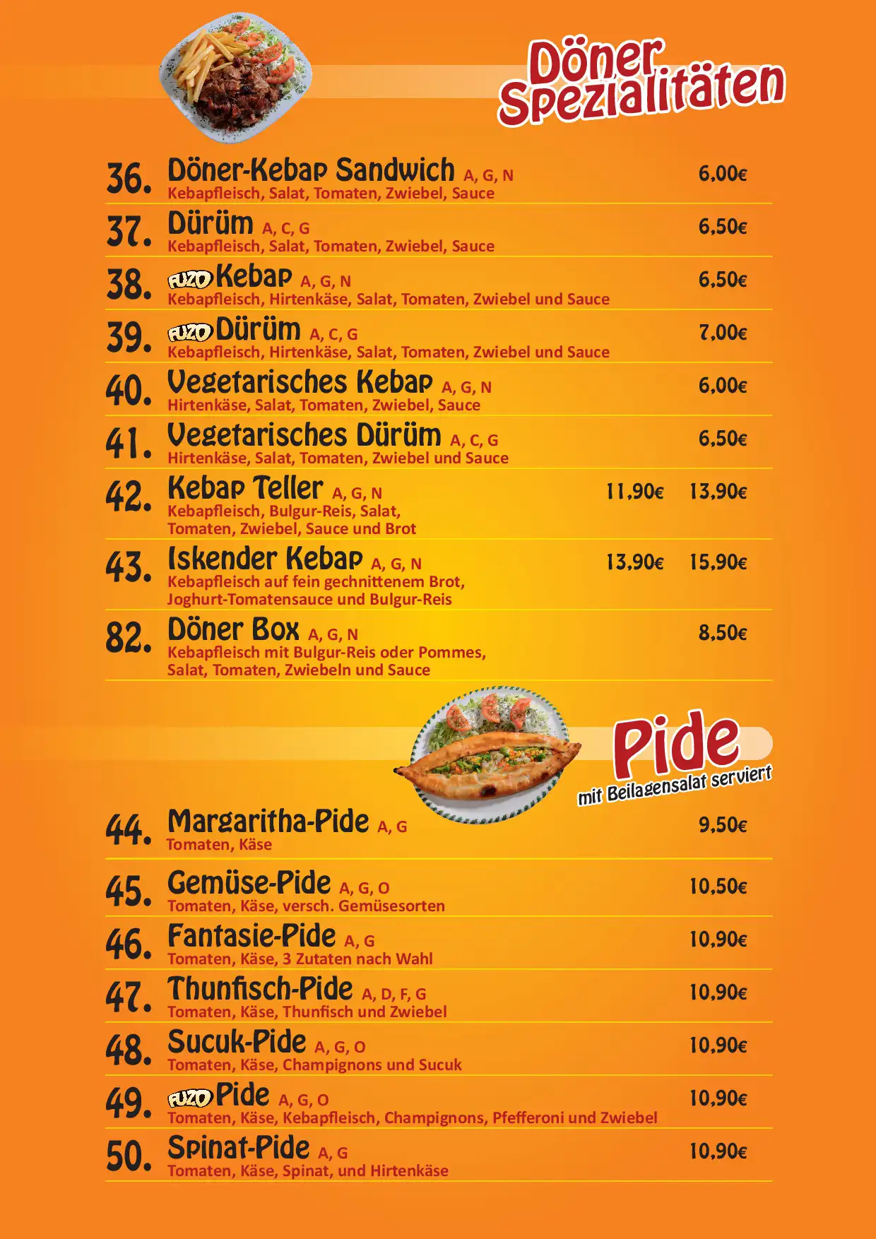 Pizza, Döner, kleine Imbisse und köstliche Desserts – unsere Speisekarte lässt keine Wünsche offen.